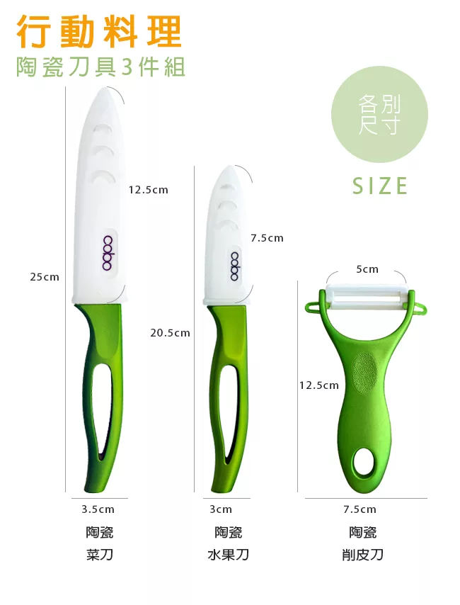 博客來e-coupon 【cobo】行動料理陶瓷刀具3件組(削皮器+水果刀+菜刀)