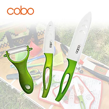 【cobo】行動料理陶瓷刀具3件組(削皮器+水果刀+菜刀)